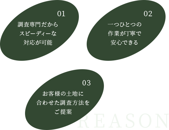 当社は、地質調査をはじめ構造物調査や埋設物調査など、調査を専門としております。
